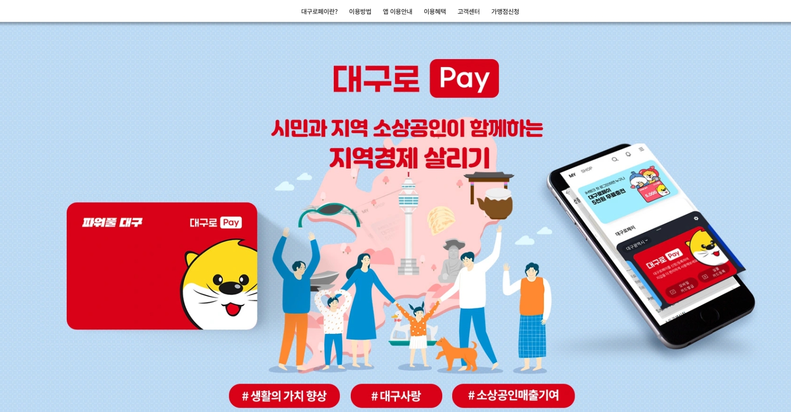 대구로페이는 대구광역시가 운영하는 지역화폐로, 시민들이 지역 가맹점에서 사용할 수 있는 지역 소비 촉진 결제 플랫폼입니다. 카드형과 앱 결제형 두 가지 방식으로 제공되며, 대구시민 누구나 간편하게 충전해 사용할 수 있습니다.