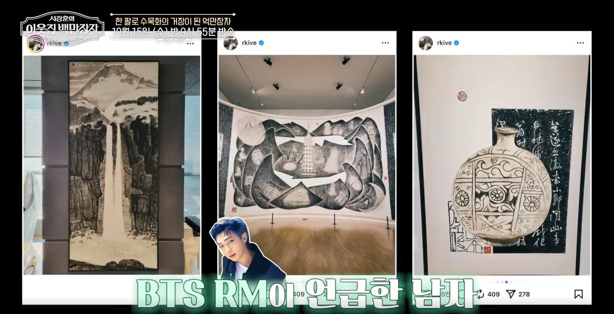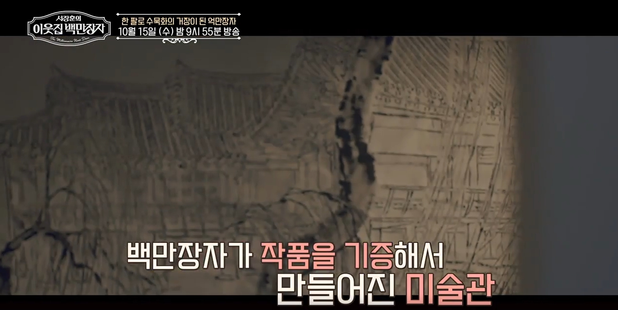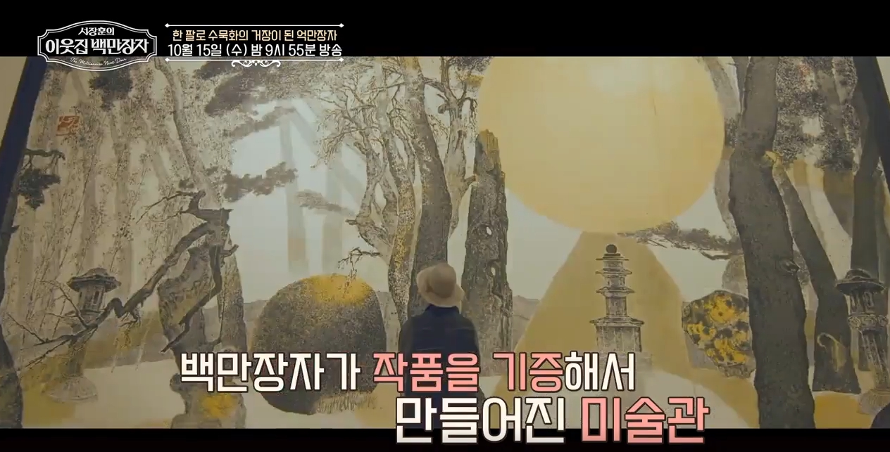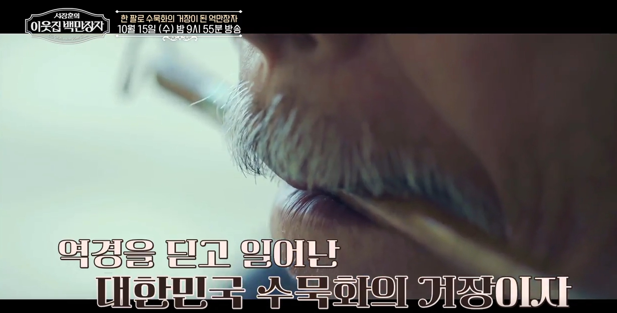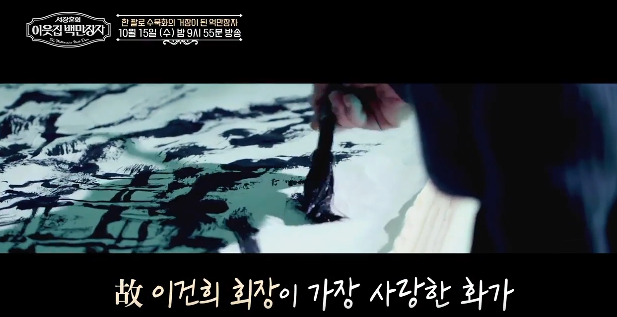 오늘 밤 EBS ‘서장훈의 이웃집 백만장자’에서 ‘한국 수묵화 거장’ 박대성 화백의 작업실과 일상이 방송 최초로 공개됩니다. 첫 방송은 10월 15일(수) 밤 9시 55분, 이어 10월 22일(수)까지 2주 특집으로 편성됐습니다. 이번 회차에는 부인인 ‘성화(聖畵)의 거장’ 정미연 화백도 함께 출연해 부부 화백의 따뜻한 일상과 예술적 동반자 관계를 보여줄 예정입니다. 특히 박 화백의 비밀스러운 작업실, 문방사우로 가득한 공간, 그리고 서장훈·장예원의 ‘제자 도전기’가 예고되며 화제성을 더하고 있습니다.