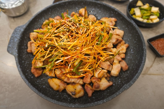 특히 모든 고기 메뉴는 “직접 구워서 제공”되어 손님이 불판에서 구울 필요가 없으며, 파절이·김치·콘마요·겉절이 조합이 최고라는 호평이 많습니다.