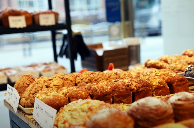 연잎 단호박 빵, 소금빵 라인(명란/찹쌀 등), 모닝슈, 맘모스, 호텔식빵, 갈릭바게트가 재방문율이 높습니다.