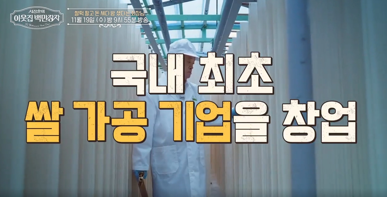 이번 방송에서는 주정침지법, 스팀 압력 떡 증숙기, 태양열 자연건조 등 국내 쌀 가공식품 역사에 남을 혁신을 이뤄낸 이 회장의 파란만장한 여정을 깊이 있게 다룹니다.