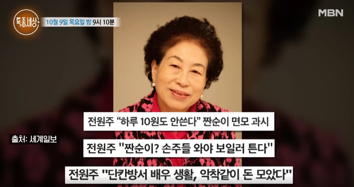 2025년 10월 9일 방송되는 MBN ‘특종세상’ 708회에서는 배우 전원주의 인생 이야기가 공개됩니다. 오랜 시간 ‘국민 짠순이’로 불리며 절약의 상징으로 사랑받아온 그녀는 이번 방송에서 남편의 유언을 계기로 “쓸 땐 쓰는 삶”을 선택한 근황을 전합니다. 전원주의 변화 뒤에는 두 번의 결혼과 사별, 그리고 평생 이어온 절약과 투자 철학이 있었습니다.