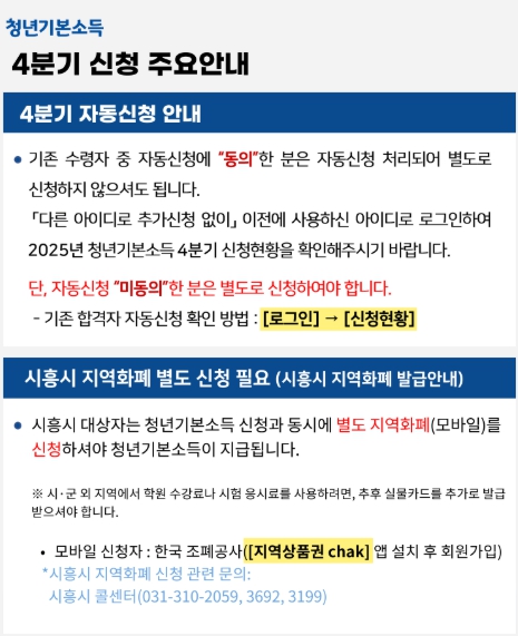 - 지원내용: 분기별 25만 원씩, 최대 연 100만 원 지역화폐