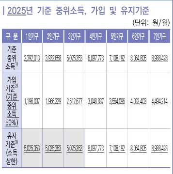 - 소득 기준 : 가구 소득인정액이 기준 중위소득의 50% 이하
