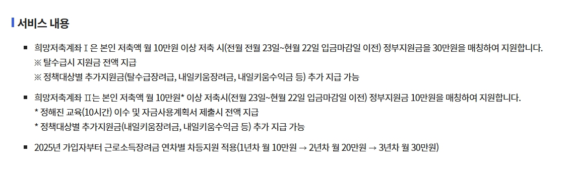 - 중복 제한 : 희망플러스통장, 청년내일저축계좌 등 타 자산형성 지원사업 참여자 제외